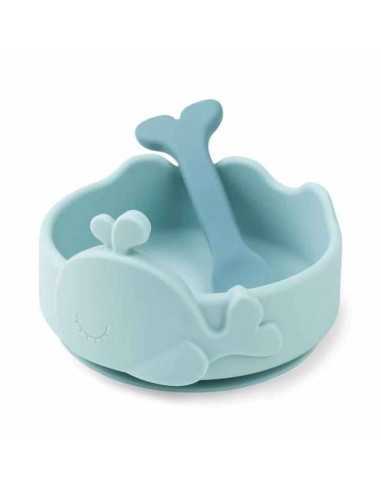 Es un cuenco y cuchara de material suave para su manejo por parte de los niños más pequeños, son adecuados para usar en el microondas, horno, congelador y lavavajillas, además de tener características antideslizantes.